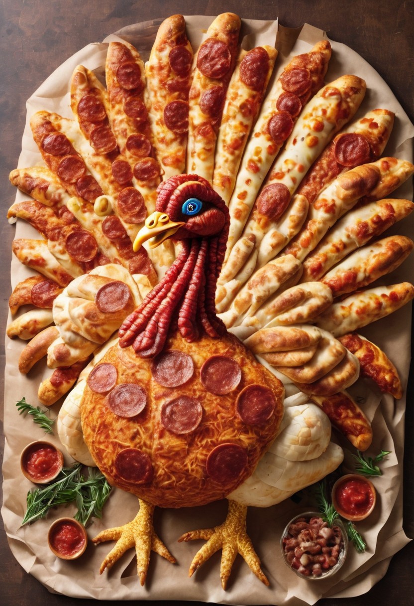 pizzasdx, A festive Thanksgiving turkey made entirely out of pizza