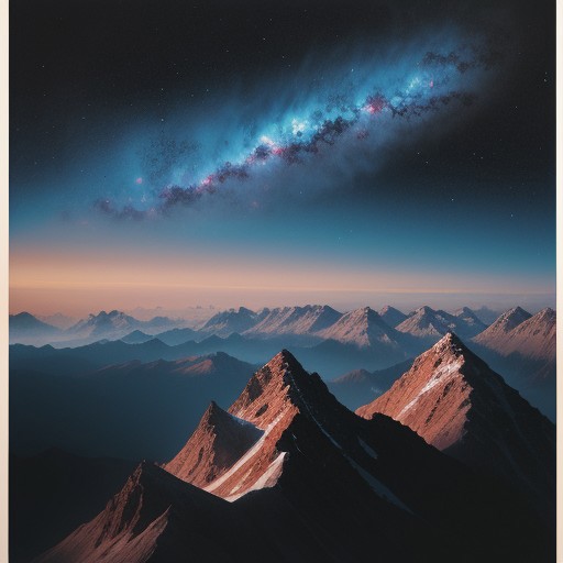 A Chinese art, mountain, cliff, blue nebula