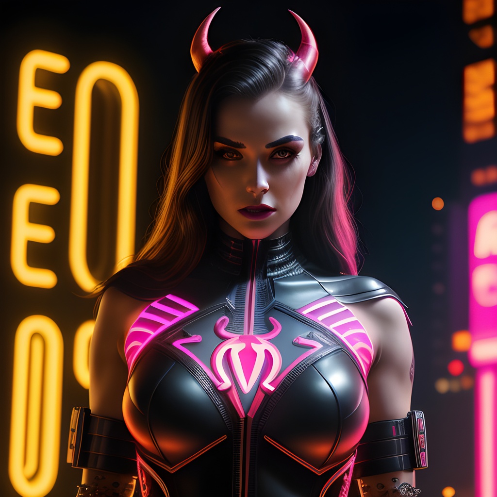 masterpiece, intricate photo, beautiful female superhero shedevil in front of letter omega, in parts skeleton, cyberpunk art, neon colors, highly detailed, sharp focus, ultra sharp, colorful, studio lighting, best quality, high resolution, 8K
