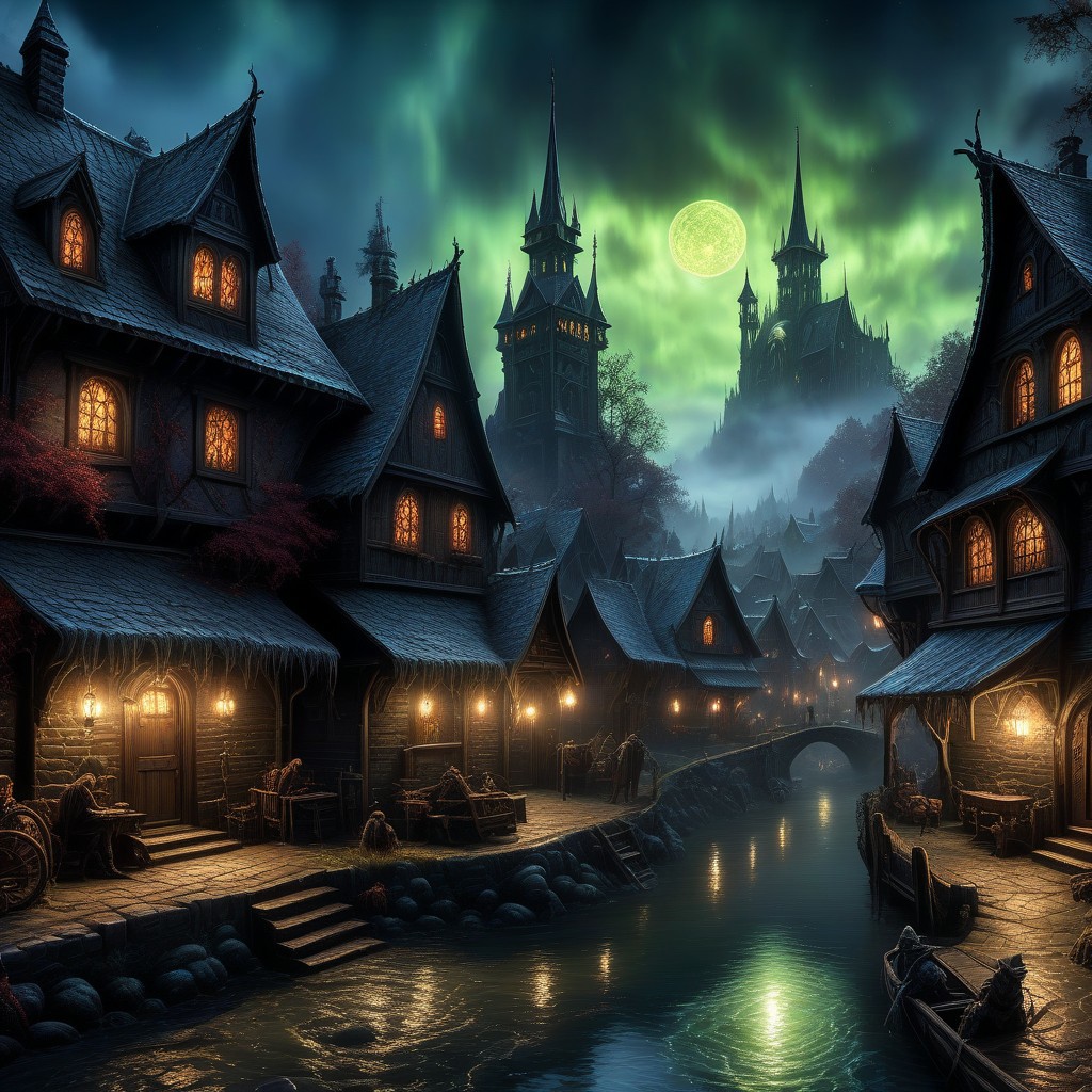 <lora:SS02ImpressionisticPainting_Hap_XL:1>,Thomas Kinkade style, (Ink illustration on parchment). A futuristic The city of yharnam, bloodborne, oil painting, done with japanese brush technique, realistic, extreme detail, scary, terrifying, dark and warm environment, 8k, masterfully stylized, by Jeff Easley and Terry Redlin (zavy-mthcl:1.3), alien landscape ,Spectacular auroras dancing across the heavens, Quaint villages nestled in verdant valleys , alien flora, Chiaroscuro,,, surrealist, horror, trending on artstation, digital painting, painterly, concept art, smooth, illustration, clean ink detailed line drawings, cell shaded, 4k, tone mapping, doll, akihiko yoshida, james jean, andrei riabovitchev, marc sim