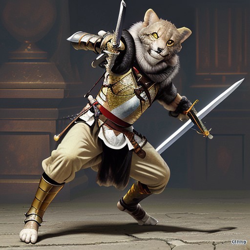 score_9, score_8_up, score_7_up, score_6_up, score_5_up, score_4_up, m0use_goldie, female, grey fur, golden eyes, (cute, feral:1.5), (holding sword:2), (bronze armor, beige tunic), (paladin), (adventurer:1.5), Foreshortening, dynamic pose, high angle view, extreme perspective, (action pose:2), indoors, dungeon,