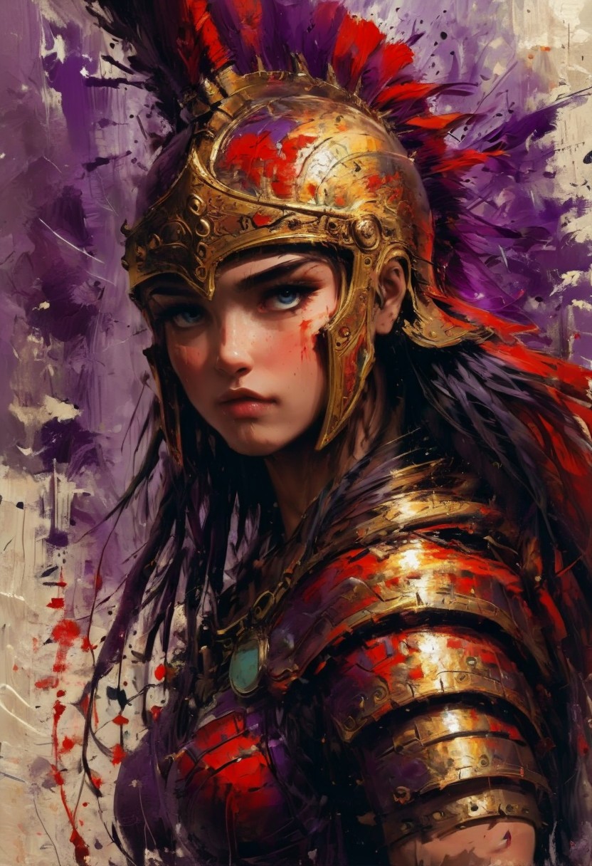 flying warrior goddess, drawn in bold brushstrokes