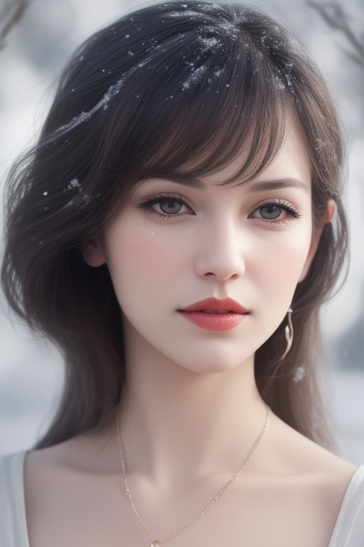 simple woman's drawing, powder, parchment, snow-white bokeh, lacquer on the lips, a chain, realistic, professional photo, close-up