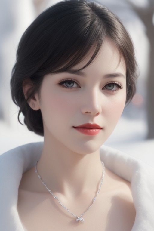 simple woman's drawing, powder, parchment, snow-white bokeh, lacquer on the lips, a chain, realistic, professional photo, close-up