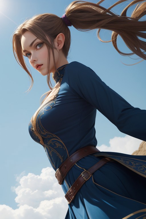 (masterpiece),score_9, score_8_up, score_7_up, highly detailed, best quality, expressive eyes, perfect face, perfect eyes, Highly detailed,best quality, masterpiece, realistic,masterpiece, best quality, photography, realistic photo,4k,hyper detailed, masterpiece, best quality, best quality, ultra detailed, ((detailed eyes)),nsfw, (Masterpiece), (Best Quality), (Detailed), (highres), best quality, dramatic lighting,8k, dramatic lighting, ultra-detailed, intricate details, ((perspective, dynamic pose, dynamic angle, sexy pose)), anime style, CG, detailed CG, elf girl, blonder, side ponytail, white noble dress, slender body, petite, medium breats, medieval fantasy, loocking at ocean, blue sky, long sleeve,((from below:1.2)),((from side:1.2)),