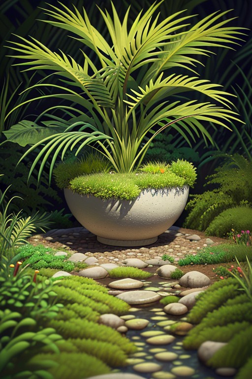 best quality, highres, absurdres, ultra-detailed, a surrealist sculpture, raytraced 3d render, by Julian Allen, massurrealism, cgsociety, verdant_skin, grassy_skin, plant_bush_object, lush_foliage_texture, eco_aesthetic, botanical_surrealism