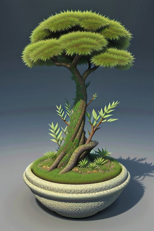 best quality, highres, absurdres, ultra-detailed, a surrealist sculpture, raytraced 3d render, by Julian Allen, massurrealism, cgsociety, verdant_skin, grassy_skin, plant_bush_object, lush_foliage_texture, eco_aesthetic, botanical_surrealism