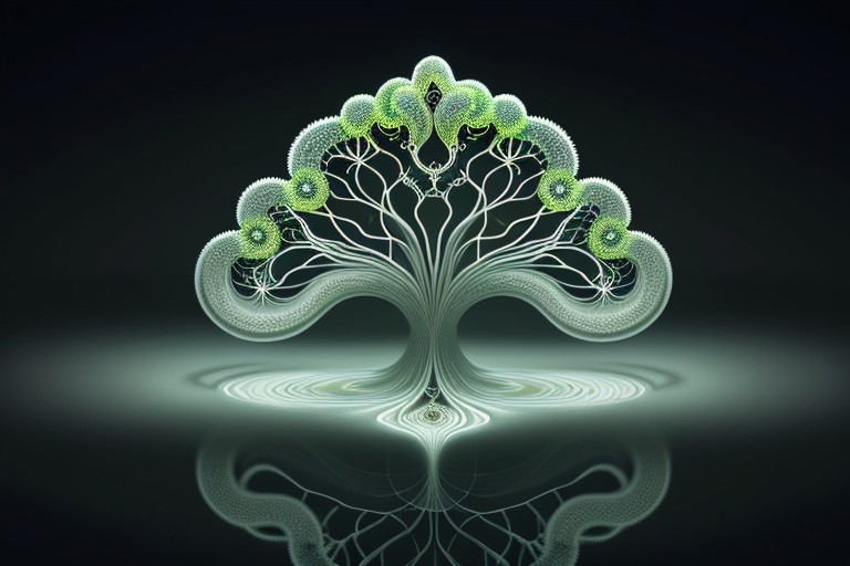 Create a visually stunning, mathematically intricate phalic scene that blends nature-inspired fractal patterns with the shadows of higher-dimensional geometric shapes. Incorporate elements such as delicate fractal trees, flowing water motifs, and organic phallic symmetry, seamlessly intertwined with ethereal, multi-dimensional shadows that suggest unseen dimensions. Utilize gradient lighting to highlight depth and complexity, balancing the serene beauty of natural forms with the enigmatic elegance of advanced mathematical structures. The composition should be both challenging to render and aesthetically captivating, showcasing infinite symmetry and intricate details that evoke a sense of wonder and complexity.