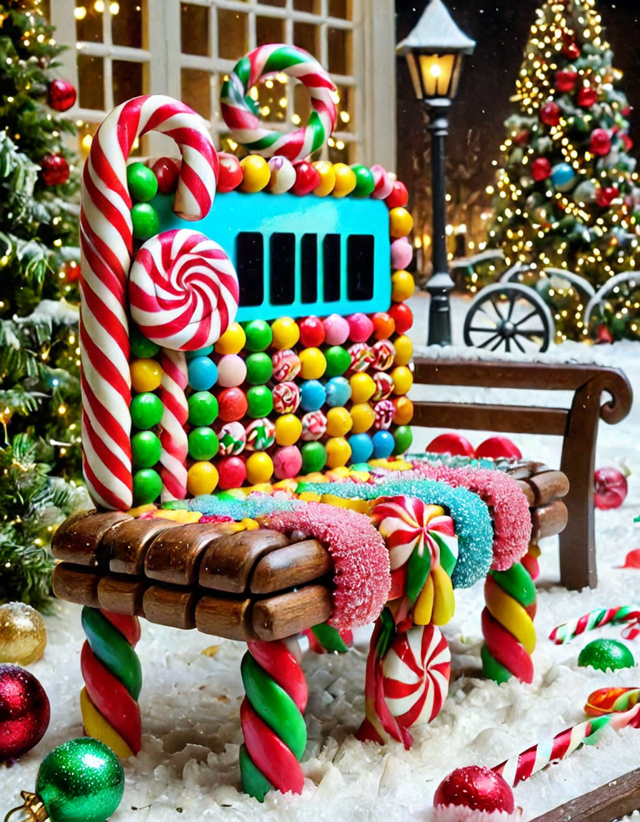 CHRC4ND7, phone, masterpiece, benches, <lora:Christmas_Candy:1>