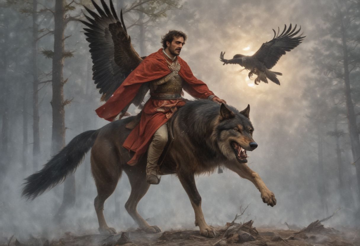 picture with high quality and resolution depicting the image of Hadji Dimitar the ballad of Hristo Botev. He who falls fighting for freedom, he does not die: he is pitied earth and sky, beast and nature and singers sing songs about him... By day an eagle guards his shadow, and a ((wolf meekly licks his wound)); above it a falcon, a youth bird, and she cares for a brother, for a hero! The evening came - the moon rose, stars shower the firmament; the forest roared, the wind blew, The Balkans are singing a bad song! picture with high quality and resolution depicting the image of Hadji Dimitar the ballad of Hristo Botev. high quality picture, excellent resolution, clear and well-focused images, depicting the image of Hadji Dimitar, the ballad of Hristo Botev. 1 seriously wounded man, about 30 years old, expression dramatic, heroic, pain and sadness in his eyes, (lips dry and cracked), lying in the Balkans under a tree with (a deep chest wound), clothes bloodied and torn after a hard battle, (( next to him 1 wolf licking his wound)),((over him 1 eagle spreads its wings and protects him from the hot rays of the sun))