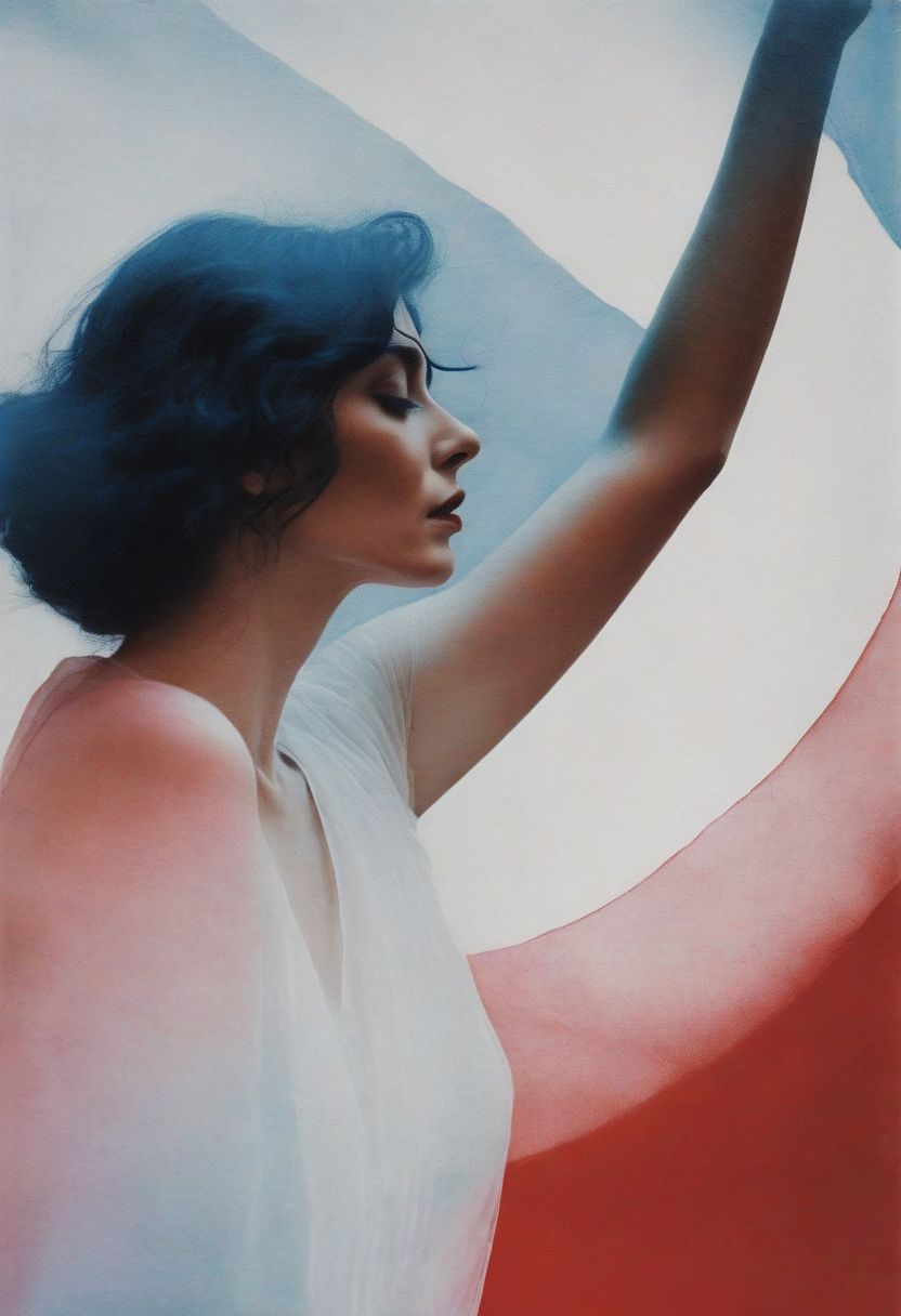 (Soft Lighting Photography by Mimoza Veliu and Mario Giacomelli:1.2), NSFW, A spectral argentinian woman, her form barely tangible, emits a soft glow from her gentle contours, casting a dreamlike ambiance in a 1990s-style poster with dark red and blue details, colorful (polaroid:0.8) with vibrant colors, (small, vacations, selective focus, european film:1.2), (low-light:1.8)