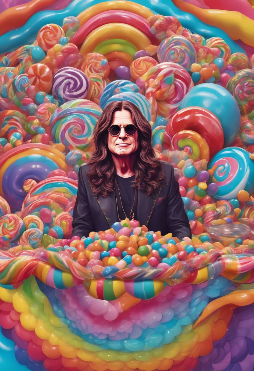 Ozzy Osbourne, Candy art style! Whimsical playful colorful! candy!!! <l<m Candyland art!! Hyperrealistic hyperdetailed highly detailed, digital illustration postmodernism, artstation, poster art, dynamic lighting, cel-shaded, ray tracing reflections vibrant colors Candyland wonderland gouache swirls detailed abstract vector fractal, wave function, Zentangle, 3d shading Candy art style! Whimsical playful colorful! candy!!! <l<m