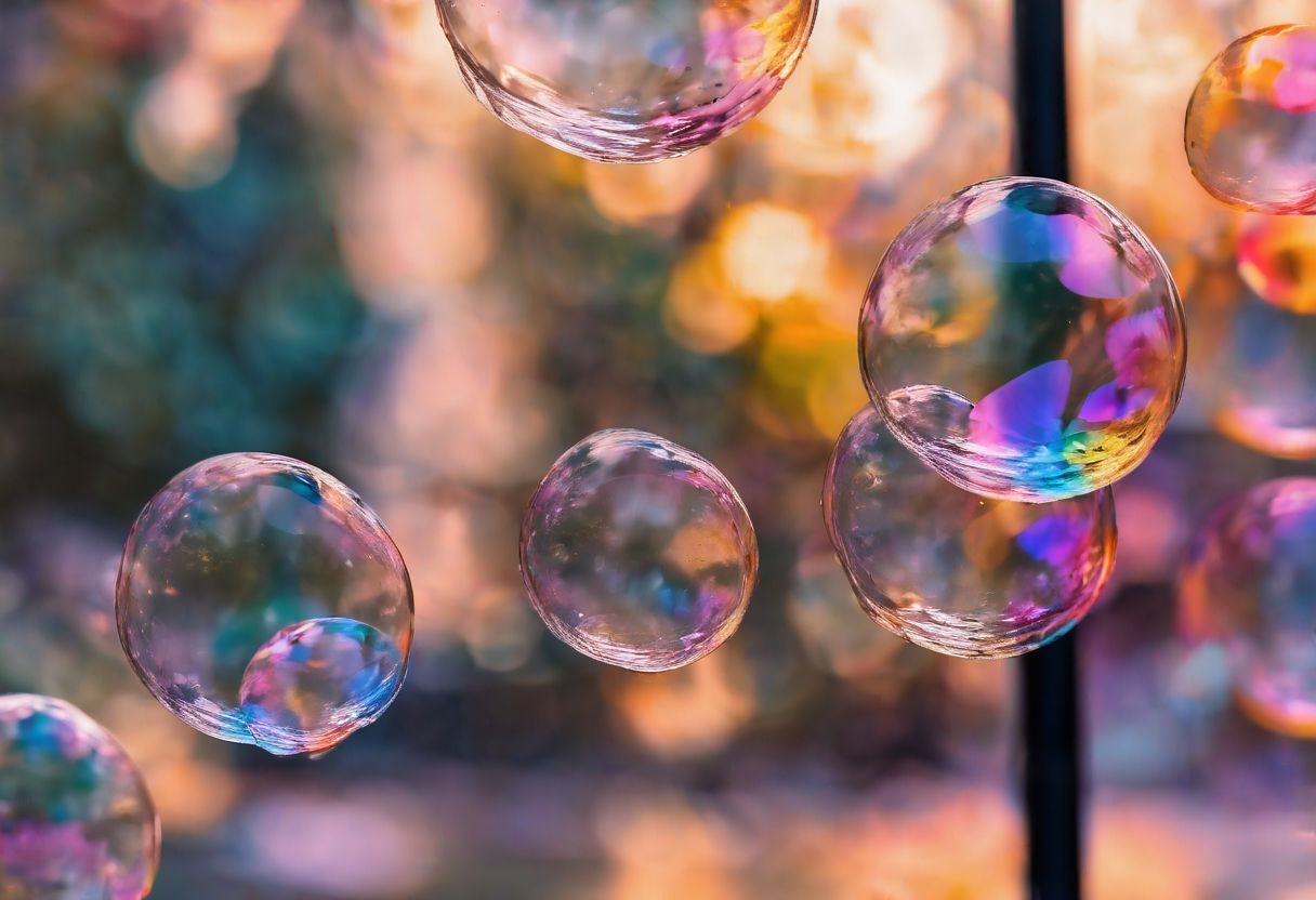 photography,masterpiece,big transparent soap bubbles of different size scattered in air,colorful reflection,gredient color change,background is blurry flowers,abstract,dreamy,glowing lines Effects,texture,insane details,extreme resolution,from front side,upper body,8K, HDR,