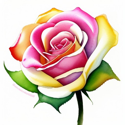 Watercolor. Vibrant. Bright. Neon. White background rose