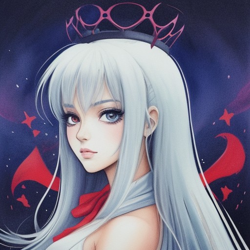A beautiful sly girl. Anime style. crayon/ink/watercolor. esoteric ritual art Heavy outlines, rough outlines. Background: vector art red blue sharp. Side portrait.