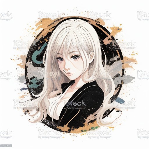 A beautiful sad white girl. Anime style. crayon/ink. Abstract painting. Heavy outlines, rough outlines. Background: japanese background vector art American shot. Half body.