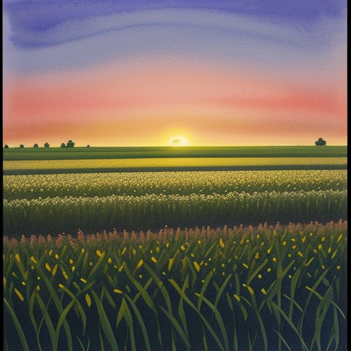 Abstract watercolor painting. beautiful field of crops at dusk.