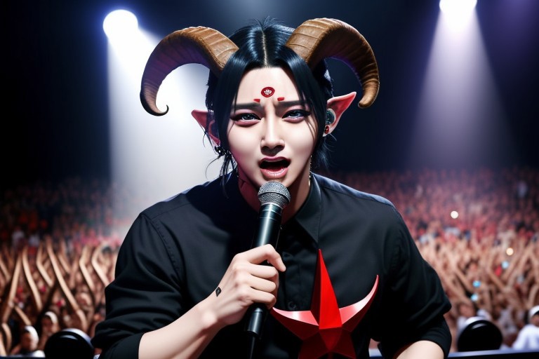 Score_9, (disturbing), ((K-pop concert)), ((Hell)),(satanic), Devil, goat man hybrid