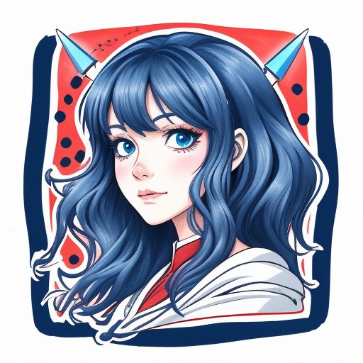 A beautiful sly girl. Anime style. crayon/ink/watercolor. esoteric ritual art Heavy outlines, rough outlines. Background: vector art red blue sharp. Side portrait.