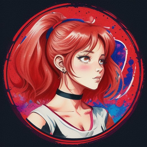 A beautiful sly girl. Anime style. crayon/ink/watercolor. Abstract painting like esoteric art Heavy outlines, rough outlines. Background: vector art red blue sharp. Side portrait.