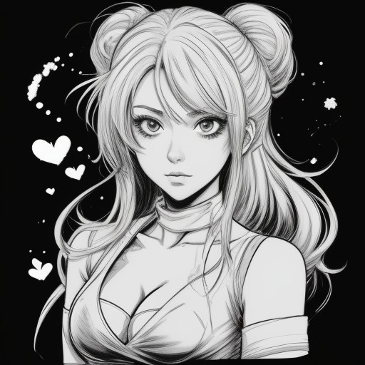 A brunnete girl. Anime style. Black background. Rough lines, amateurish. epic.