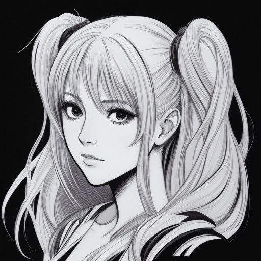 A white redhead girl. Anime style. Black background. Rough lines, amateurish. epic.