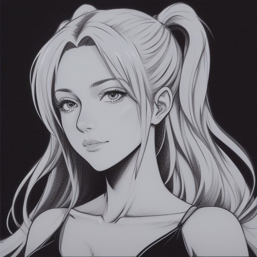 A white redhead girl. Anime style. Black background. Rough lines, amateurish. epic.