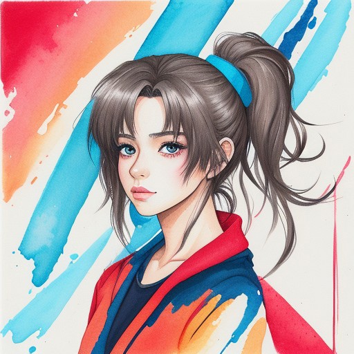 A beautiful sly girl. Anime style. crayon/ink/watercolor. Abstract painting like esoteric art Heavy outlines, rough outlines. Background: vector art red blue sharp. Side portrait.