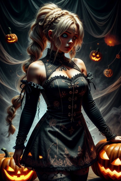halloween, city, (pumpkin dress:1.2), (pumpkin-shaped dress:1.2), <lora:HalloweenGlowStyle:0.4>, halloweenglowstyle, pumpkin tights,, barbarian woman, blue eyes, 170cm tall, (braided ponytail:1.2), single braid, (blonde hair:1.1), <lora:breastsizeslideroffset:-0.1>, (heavy upper lips:1.1), <lora:muscle_slider_v1:1>,, (masterpiece, high quality, best quality:1.3), Detailed, (everything Detailed), <lora:more_details:0.2>, <lora:add_detail:0.2>, <lora:detail_slider_v4:0.2>,
