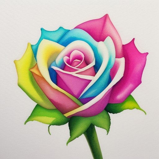 Watercolor. Vibrant. Bright. Neon. White background rose