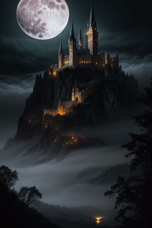 a fantasy city of Gondolin, hidden in the mountains, illuminated by moonlight, epic landscape, medieval architecture, stone walls and towers, atmospheric night scene, dramatic lighting, cinematic quality, fantasy art, detailed environment, high realism, 8k, detailed rendering, photorealistic, chiaroscuro lighting, dramatic shadows, glowing moon, hazy atmosphere, misty mountains, lush vegetation, intricate details, masterpiece