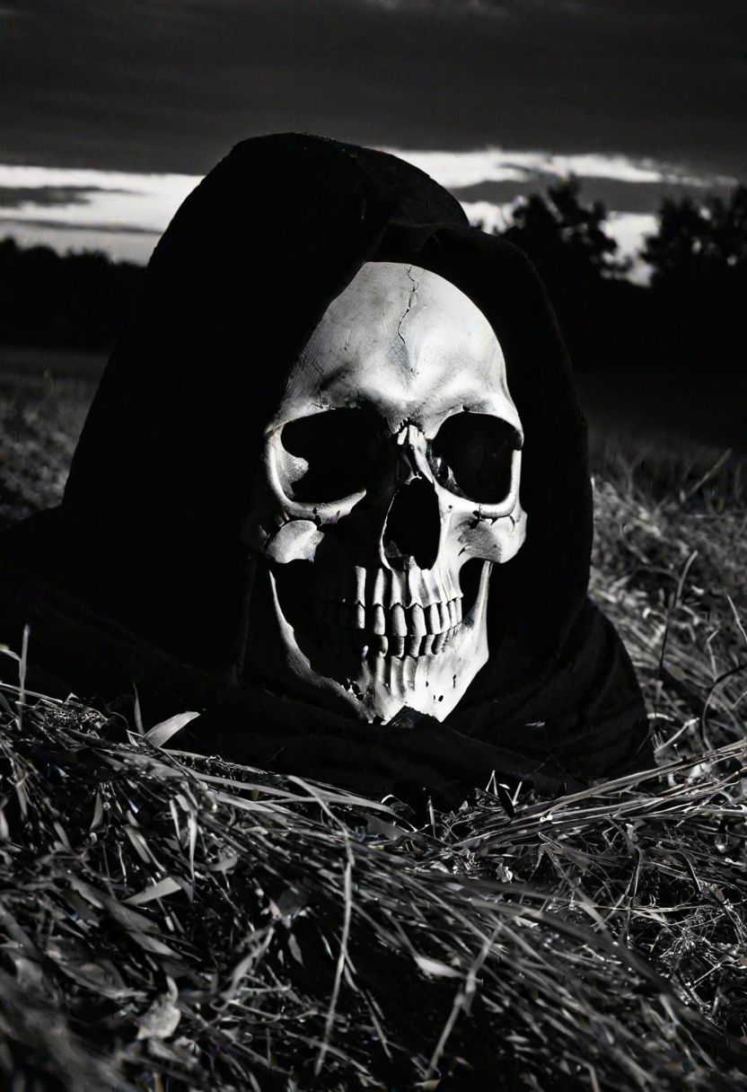 Keywords: Skull, Hispanic, Grim Reaper, Decorated, High Contrast Camera Type: DSLR Camera Lens: Wide-angle lens Time of Day: Night Style of Photograph: Dark and moody Type of Film: Digital Camera Settings: Aperture f/2.8, Shutter Speed 1/100, ISO 1600 --ar 9:16 --v 6.0