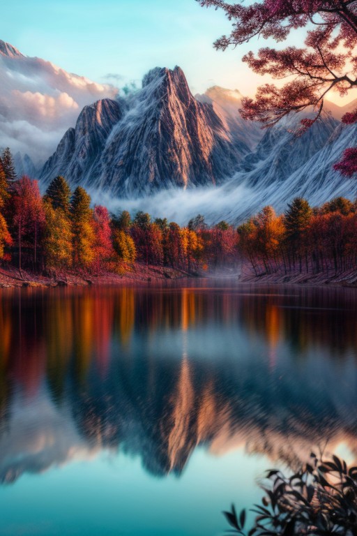 unorthodox CASTLE in the mountains, no humans in the photo, <lora:cinematic dramatic color style v1:1>,cinematic dramatic color style,<lora:MGWR_Cine:0.3>,mgwr/cine,, a surreal and enigmatic photograph,a vivid technicolor image with a dream-like fleeting quality,of a lush, tropical jungle scene with bright misty rose flames and dense foliage The background features tall, slate palm trees and a serene pond reflecting the fiery glow,Comforting,