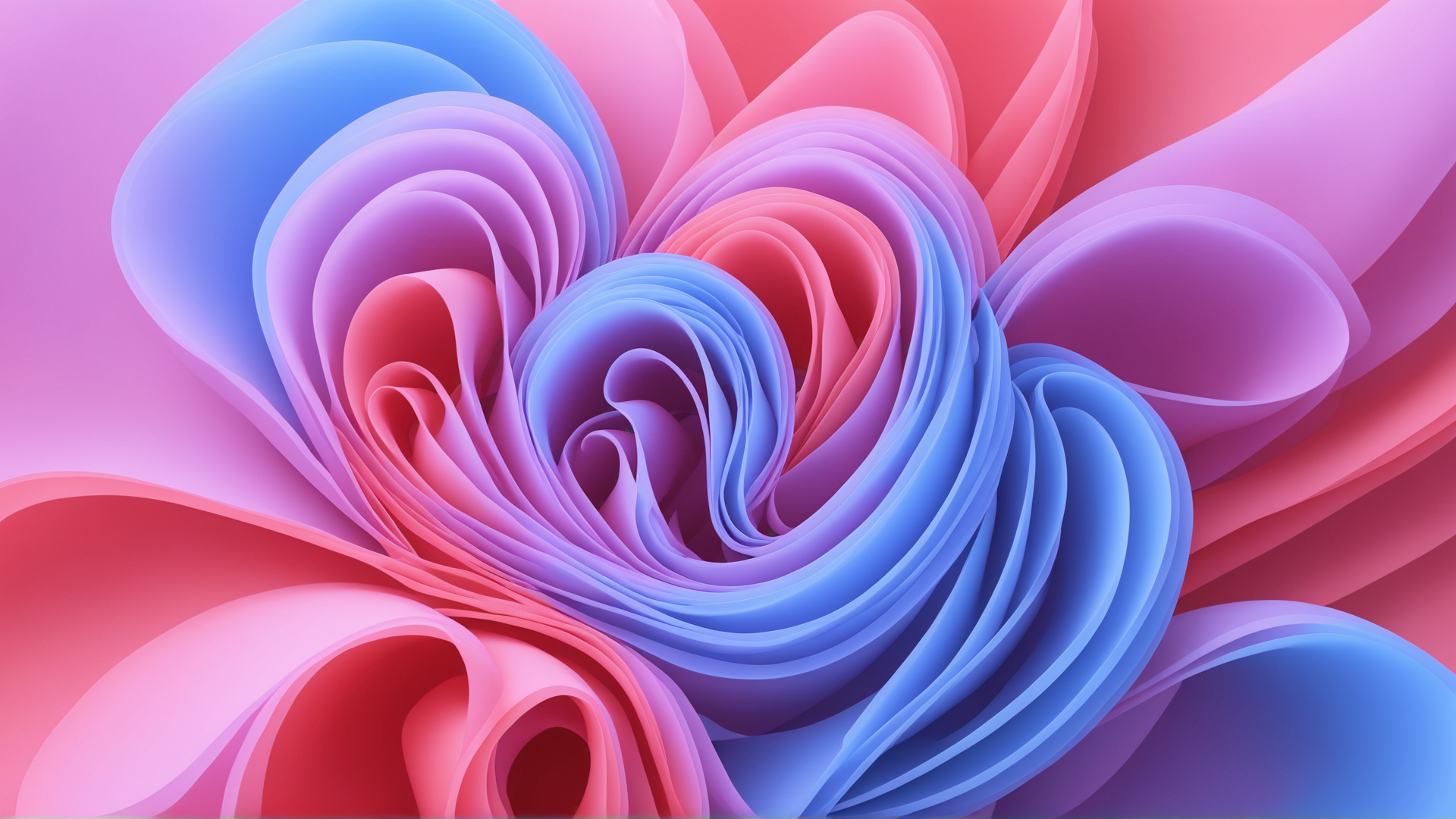 gradient color from blue to red, cloth in rose side form, desktop wallpaper in windows style, 3d render