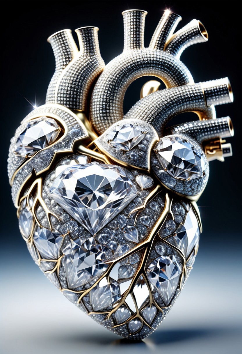 diamondMW, countless diamonds, human heart, photography, beautiful, high quality, detailed, realistic