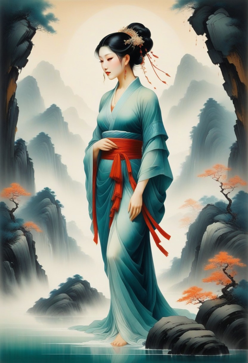 score_9, score_8_up, score_7_up, score_6_up, score_5_up, score_4_up, fluorite mineral, flu0rite, iridiscent, easynegative, mad-cbrpnksplshrt, hand, vibrant colors, portrait, easynegative, woman, dramatic lighting, dark background, source_anime, (Masterpiece:1.4), (best quality:1.2), (vivid colors), best lighting, vivid color, official wallpaper, digital art, selective brightness, Greek goddess, high cheekbones, tight hair, hair up, red lips, pale skin, serious expression, looking down and away from viewer, picture carved into polished fluorite mineral