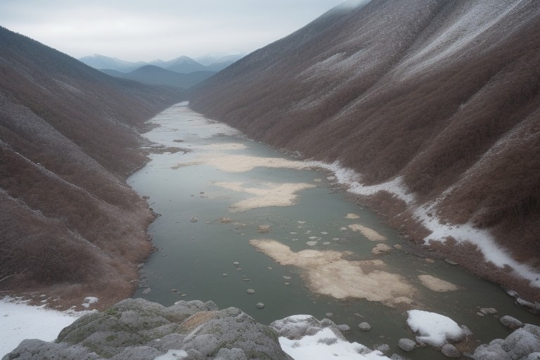 (bird's eye view), Lots of little cute bear dolls, brown bear, white bear, soaking in a big river, river deep in the mountains, hot spring surrounded by rocks, winter, snow falling, outdoor bath, neck-deep in hot water, eyes closed, smiling, smiling, mouth open, relaxed, childlike atmosphere, clay model-like image, mountain top, hot water, red cheeks, lots of steam from river, wide angle, bird's eye view like image, mountain top, steam, red cheeks, lots of steam from the river, wide angle,