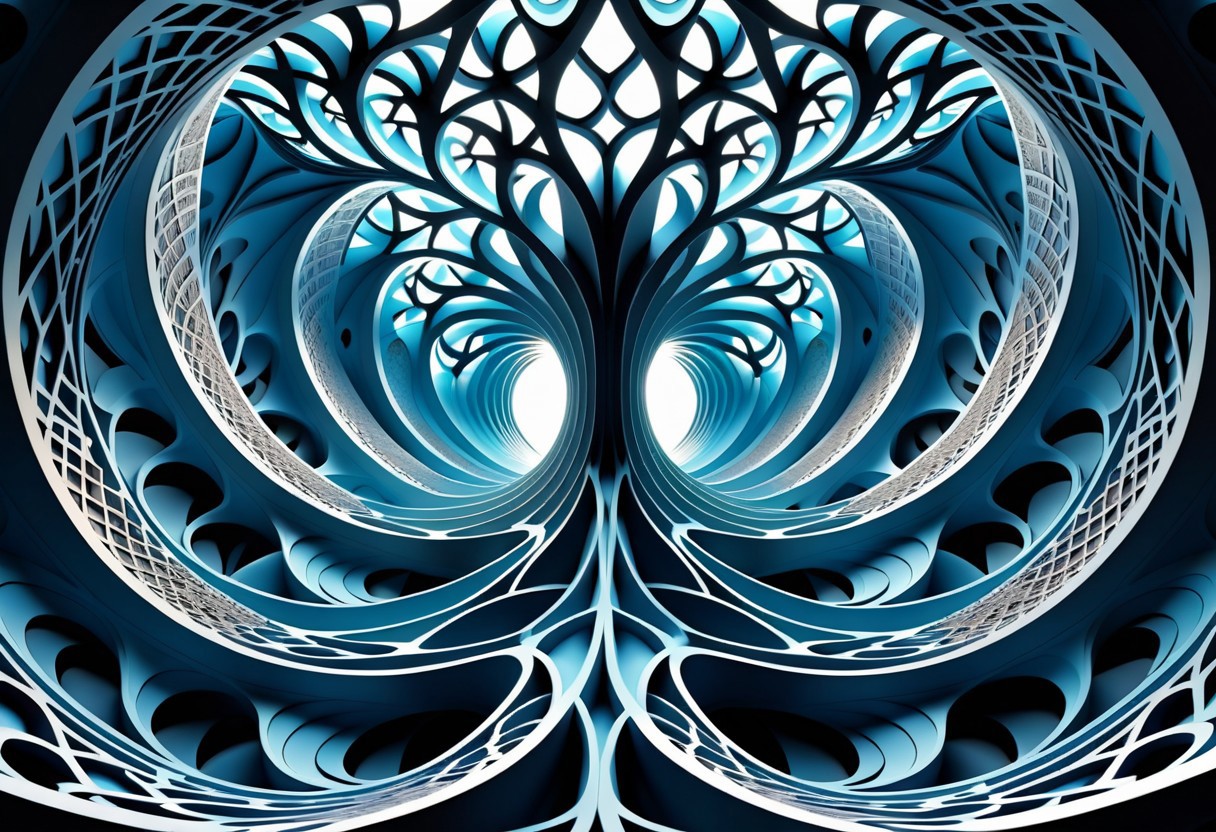 Create a visually stunning, mathematically intricate phalic scene that blends nature-inspired fractal patterns with the shadows of higher-dimensional geometric shapes. Incorporate elements such as delicate fractal trees, flowing water motifs, and organic phallic symmetry, seamlessly intertwined with ethereal, multi-dimensional shadows that suggest unseen dimensions. Utilize gradient lighting to highlight depth and complexity, balancing the serene beauty of natural forms with the enigmatic elegance of advanced mathematical structures. The composition should be both challenging to render and aesthetically captivating, showcasing infinite symmetry and intricate details that evoke a sense of wonder and complexity.