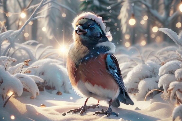 A happy cute, (robin:1.2), (bird), (wearing a winter hat), Adorable, heart warming, cheerful, detailed, bright colours, friendly expression, small size, shiny, eco-friendly, garden, winter, environmental, sunlight, shadows, digital art, whimsical, playful, intricate details, high resolution, photorealistic, joyful atmosphere, gentle, soft lighting, cartoonish style, enchanting, vivid, appealing, character design, imaginative, family-friendly, [photography, realistic, photorealistic, (8k), (highly detailed), cinematic lighting, intricate details, (high resolution), award-winning, correct focus, realistic, realistic lighting, (highly detailed), masterpiece], ((Cinematic Still-Shot)), Chr457m45m3rg3D0nMN3M1C neon,