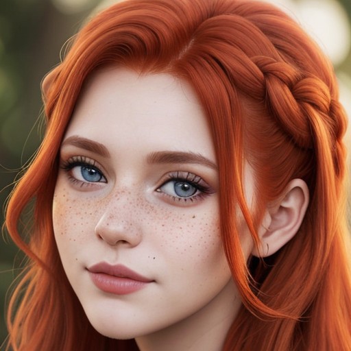 8k, photorealistic, dof, colourful, stunning redhead, fall colors, (detailed_face:1.2), long_hair, braids, freckles, (makeup eyeliner lipstick:0.8), bright_detailed_eyes, eye level, portrait, soft light