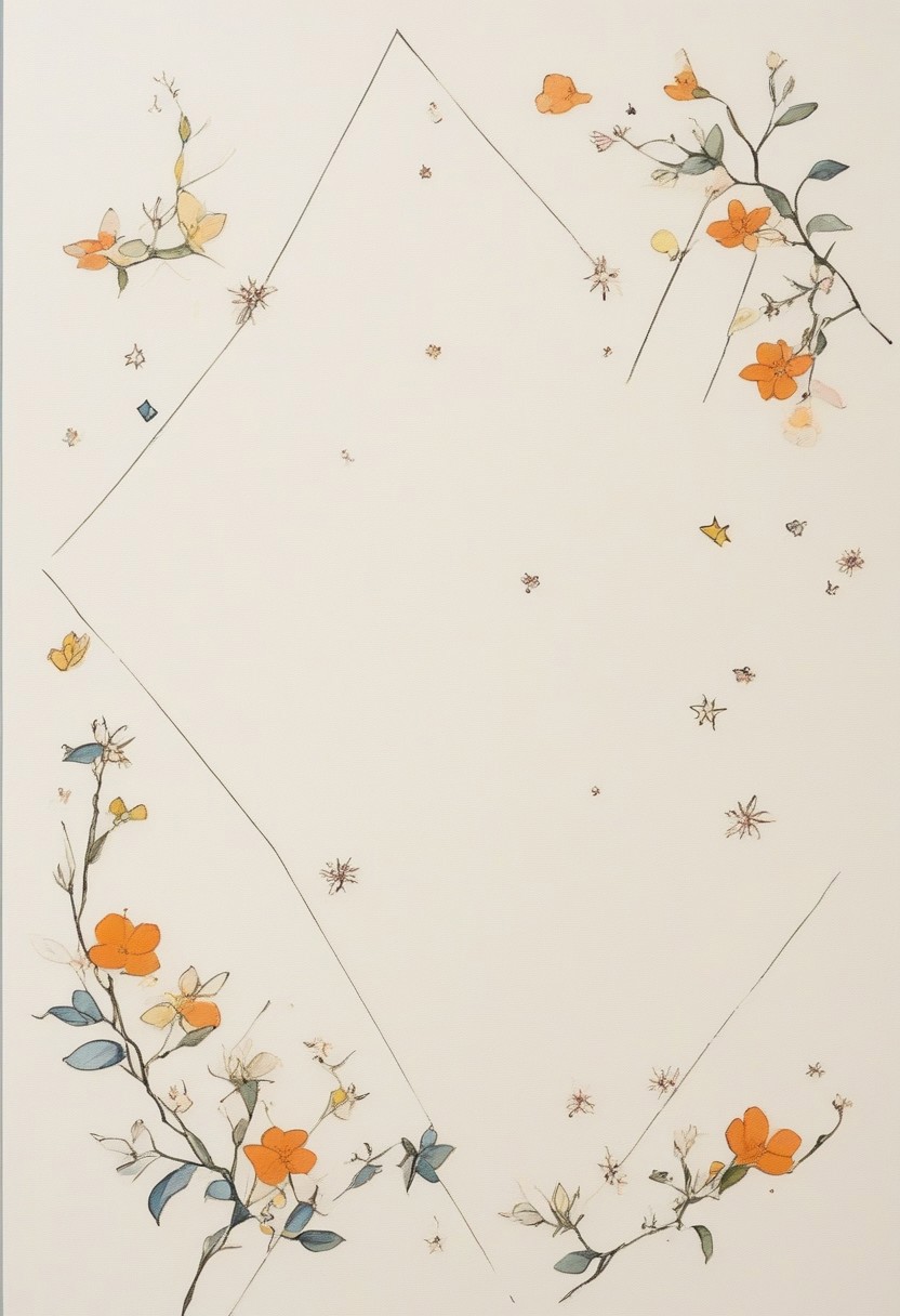 scattered orange blossoms and geometric shapes, ArsMJStyle, Delicate Whimsy