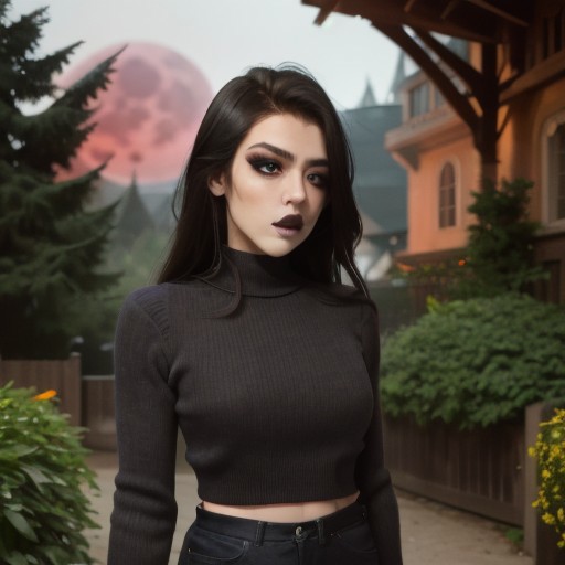 undressing,undersized bra, huge breasts, skindentation, cleavage, underboob, sideboob, bursting breasts ,beautiful, (masterpiece:1.2), (best quality:1.2), perfect eyes, perfect face, perfect lighting, gothgirl, 1girl, solo,muscular, croptop, underboob,outdoors, dark castle, (red moon), voluptuous, massive breasts, upper body, makeup, <lora:gothgirl:0.75>,