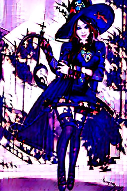 solo girl, Rat ears, rat tail, flat chest, short, posing, multi-colored hair, happy to see you, striped thigh-high socks, high heels, gothic dress, looking at the viewer, witch hat, gothic world,