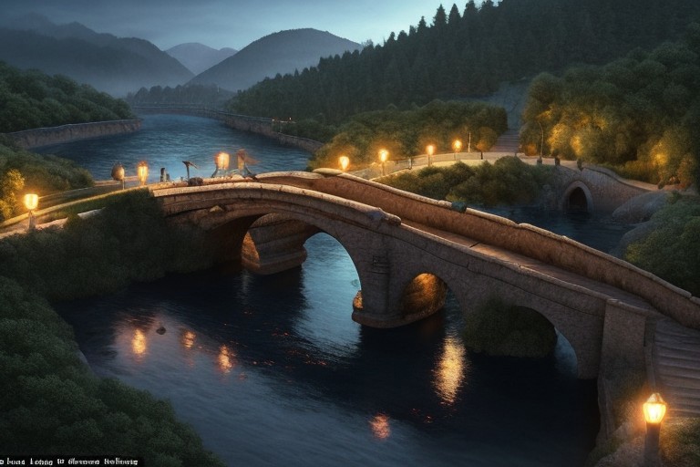 <lora:Bridge:1>, (a (stone) bridge over a river, town, city, mountain, library on riverside, epiCPhoto, night sky, decorating, looking at viewer, petite, night, outdoors, garden party, from above,):1.23, soft lights, cinematic lighting, detailed(shadow, glow), <lora:add_detail:0.42>, extremely detailed, 4K, CG, finely detailed, (masterpiece, best quality):2.0, photorealistic:1.2, no human, no people,