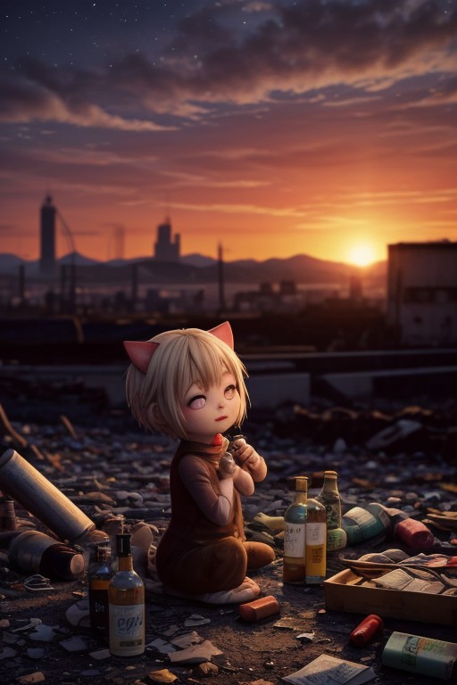 (crowd), chibi, cute, monster, food, machine, mouse, cat, war,, bullets, gun, rpg, blood, fire, waste, trash, (sky background), building, beer, vodka, whiskey, scotch, blood, fight, ((((drunk)))) 567658567776856757