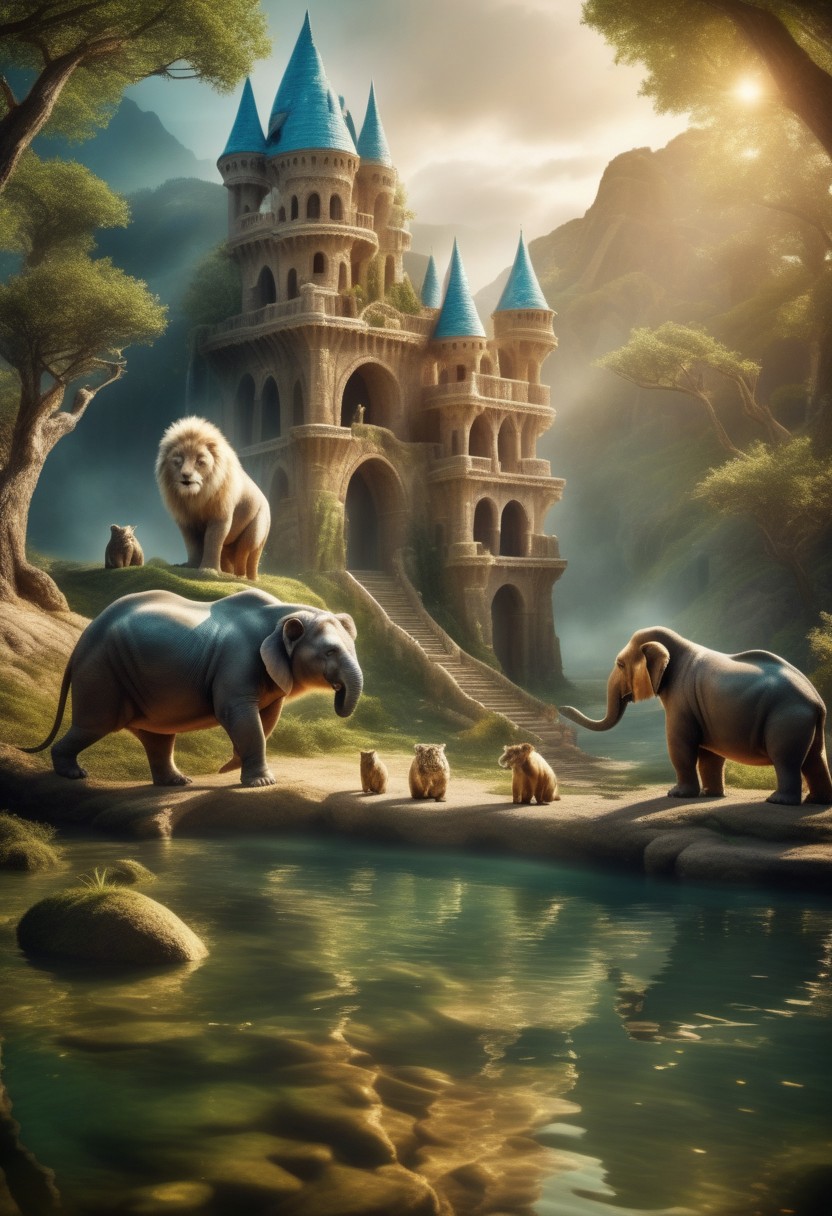 A divinely beautiful fantasy world inhabited by fantastic animals. Photorrealistic high budgete photosession. high detailised
