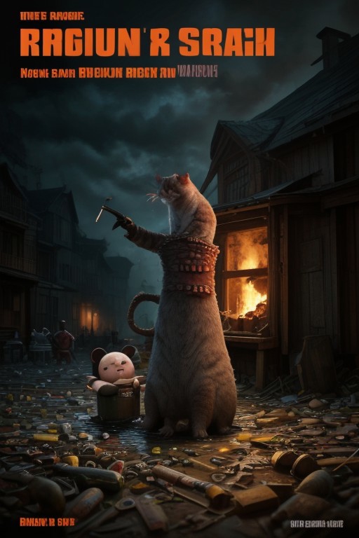 (crowd), chibi, cute, monster, food, machine, mouse, cat, war,, bullets, gun, rpg, blood, fire, waste, trash, (swamp background), building, beer, vodka, whiskey, scotch, blood, fight, ((((drunk)))), movie cover, title, text, 456456546