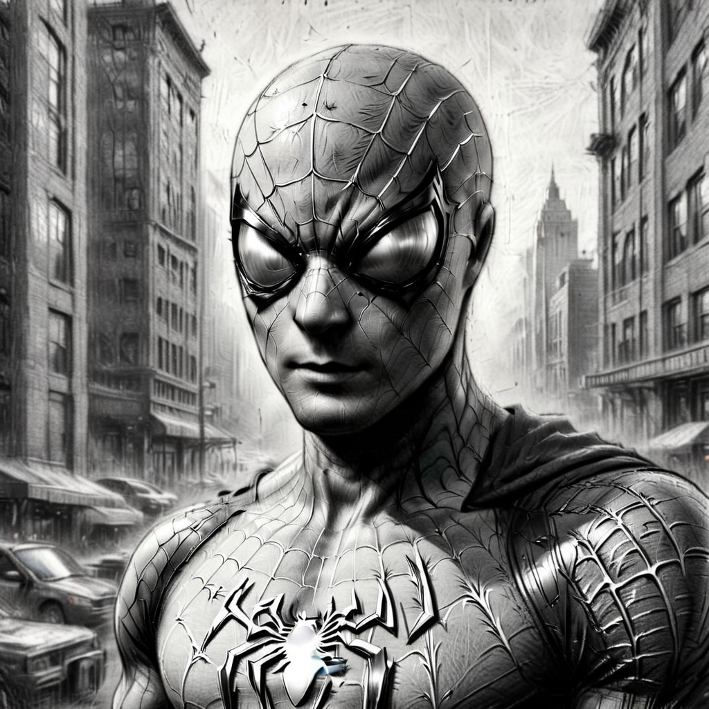 spiderman, pencil and charcoal sketch, cinematic still, photorealistic, hyperdetailed, straight from the movies, detailed and high resolution, focused on sketch pad.