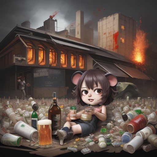 (crowd), chibi, cute, monster, food, machine, mouse, cat, war,, bullets, gun, rpg, blood, fire, waste, trash, (field background), building, beer, vodka, whiskey, scotch, blood, fight, ((((drunk)))), journal cover w3rf3wfrfrw4w5