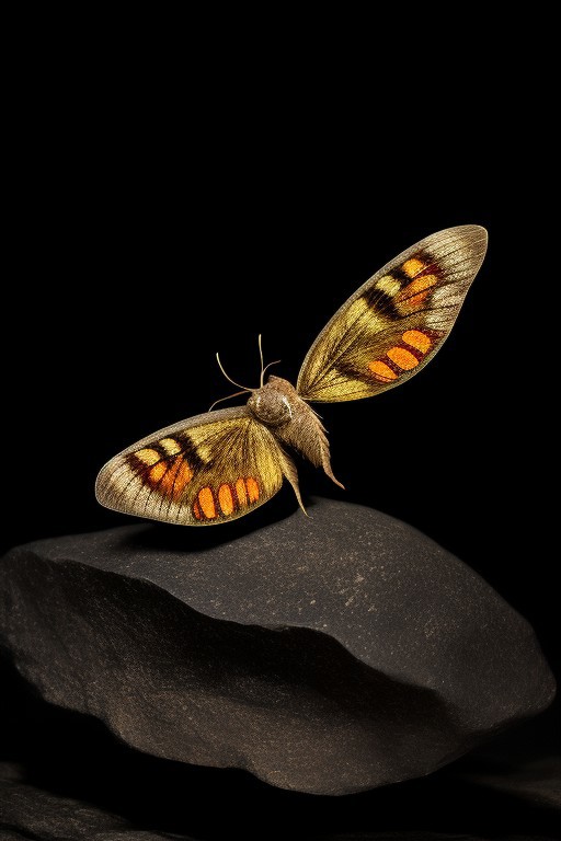 (black background, dimly lit, dark, night, rocks, fantasy),, ((( moth)))